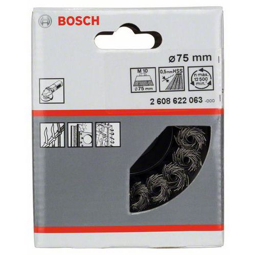 Bosch - Hrncový ocelový kartáč 75 mm, 0,5 mm, M10 Bosch - Hrncový ocelový kartáč 75 mm, 0,5 mm, M10