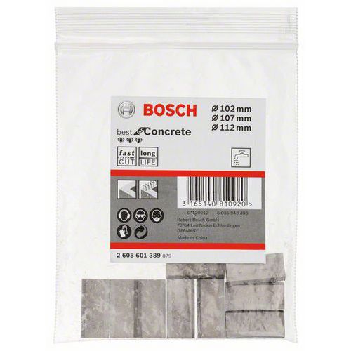 Segmenty pro osazení segmentových vrtacích korunek Best for Concrete. Hodí se na beton a železobeton s normálními až tvrdými příměsemi, zdivo balení: 1 x BAL, 10ks v BAL, 1 x BAL, 11ks v BAL, 1 x BAL, 12ks v BAL, 1 x BAL, 13ks v BAL, 1 x BAL, 14ks v BAL, 1 x BAL, 15ks v BAL, 1 x BAL, 16ks v BAL, 1 x BAL, 17ks v BAL, 1 x BAL, 18ks v BAL, 1 x BAL, 5ks v BAL, 1 x BAL, 6ks v BAL, 1 x BAL, 7ks v BAL, 1 x BAL, 8ks v BAL, 1 x BAL, 9ks v BAL pro průměr vrtací korunky: 52, 57, 62, 92, 122, 127, 132, 138, 162, 172, 226, 250, 276, 300, 102, 107, 112, 182, 186, 202, 212, 72, 78, 82 mm délka čepele: 11,5 mm počet čepelí: 5, 6, 7, 8, 9, 10, 11, 12, 13, 14, 15, 16, 17, 18 mm