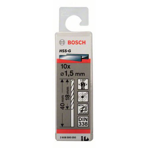 Bosch - Vrták do kovu HSS-G, DIN 338 1,5 x 18 x 40 mm, 10ks Bosch - Vrták do kovu HSS-G, DIN 338 1,5 x 18 x 40 mm, 10ks