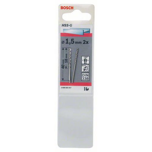 Bosch - Vrták do kovu HSS-G, DIN 338 1,5 x 18 x 40 mm, 2ks x 5 BAL Bosch - Vrták do kovu HSS-G, DIN 338 1,5 x 18 x 40 mm, 2ks x 5 BAL