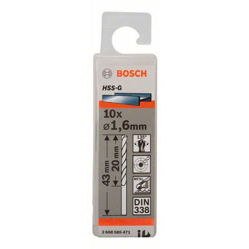 Bosch - Vrták do kovu HSS-G, DIN 338 1,6 x 20 x 43 mm, 10ks Bosch - Vrták do kovu HSS-G, DIN 338 1,6 x 20 x 43 mm, 10ks