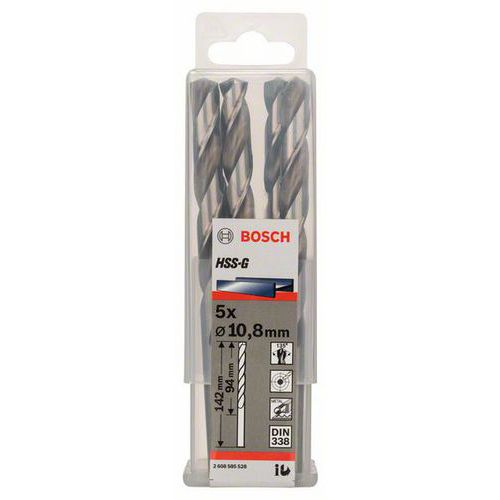 Bosch - Vrták do kovu HSS-G, DIN 338 10,8 x 94 x 142 mm, 5ks Bosch - Vrták do kovu HSS-G, DIN 338 10,8 x 94 x 142 mm, 5ks