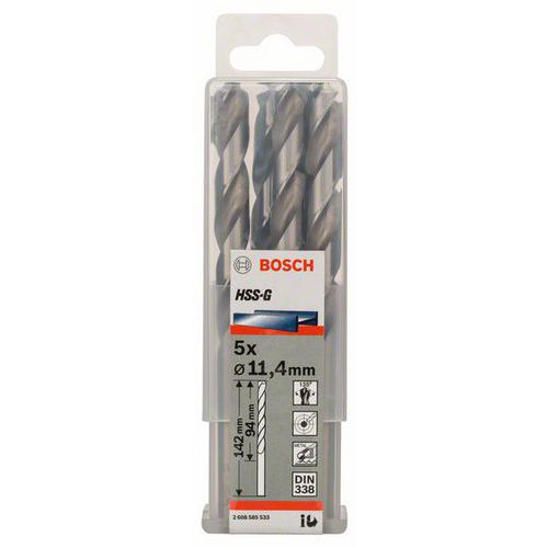 Bosch - Vrták do kovu HSS-G, DIN 338 11,4 x 94 x 142 mm, 5ks Bosch - Vrták do kovu HSS-G, DIN 338 11,4 x 94 x 142 mm, 5ks