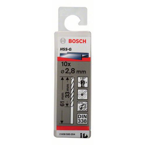 Bosch - Vrták do kovu HSS-G, DIN 338 2,8 x 33 x 61 mm, 10ks Bosch - Vrták do kovu HSS-G, DIN 338 2,8 x 33 x 61 mm, 10ks