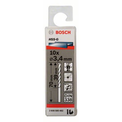 Bosch - Vrták do kovu HSS-G, DIN 338 3,4 x 39 x 70 mm, 10ks Bosch - Vrták do kovu HSS-G, DIN 338 3,4 x 39 x 70 mm, 10ks