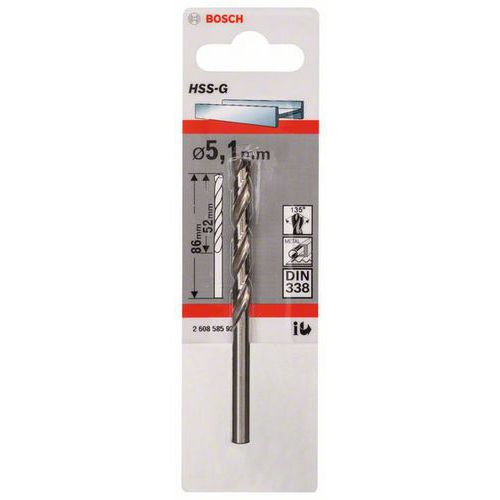Bosch - Vrták do kovu HSS-G, DIN 338 5,1 x 52 x 86 mm, 5 BAL Bosch - Vrták do kovu HSS-G, DIN 338 5,1 x 52 x 86 mm, 5 BAL