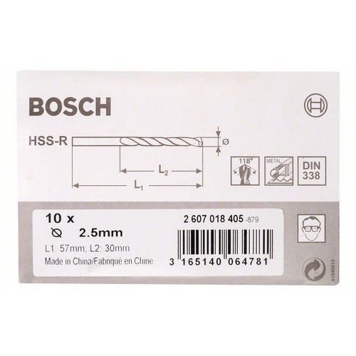 Bosch - Vrták do kovu HSS-R, DIN 338 2,5 x 30 x 57 mm, 10ks
