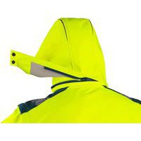 Pánská výstražná softshellová bunda s odepínací kapucí a rukávy, odolná proti vodě a větru. Fleecový límec, regulovatelné manžety na rukávech, vnitřní elastické manžety s otvorem na prst, náprsní a boční kapsy na zip, v pravé náprsní kapse odnímatelné pouzdro na ID artu, segmentované reflexní pásky, kontrastní HV červené a petrolejové doplňky, vnitřní náprsní kapsa, stahování v dolním okraji, TPU membrána, odolnost materiálu proti průniku vody 8000 mm mimo oblast švů, paropropustnost 3000 g/m2/24h. Doporučené použití: stavebnictví, silničáři, řidiči, letecká a lodní doprava, logistika, řidiči kamionů, policie. Velikost: 2XL-XL Svrchní materiál: 100 % polyester Voděodolnost: 8 000 mm Paropropustnost: 3 000 g/m2/24hod Reflexní doplňky: Ano