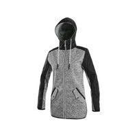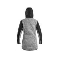 - Dámská bunda z pleteniny, prodloužená, kombinace materiálů, kapuce napevno, zapínaní na zip, rukávy zakončeny gumičkou, 2 boční kapsy.