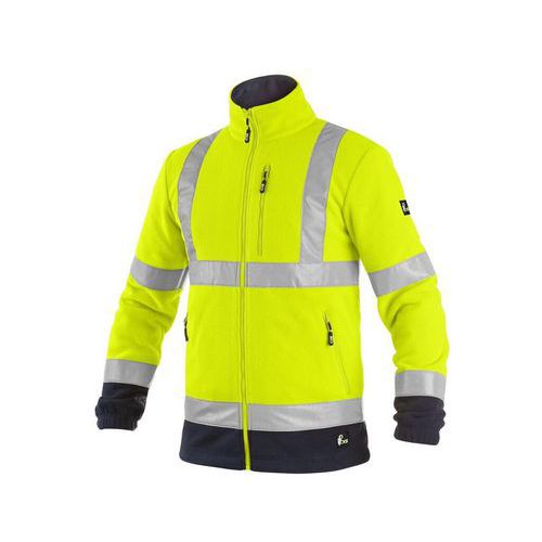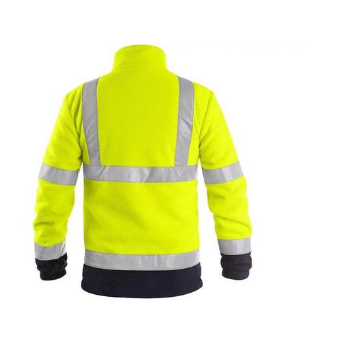 - Pánská výstražná fleecová bunda s reflexními pruhy. Rukávy do gumy, boční i náprsní kapsy na zip, stahování v dolním okraji, podšívka ze síťoviny.
