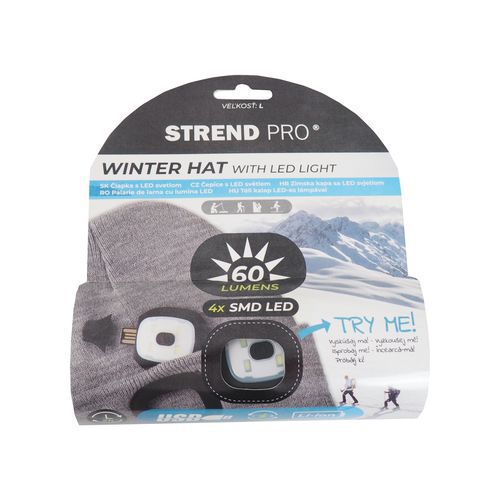 Čepice LED, velikost L, s LED světlem, šedá
