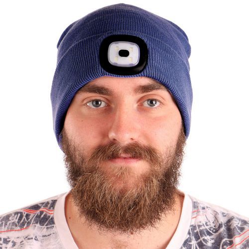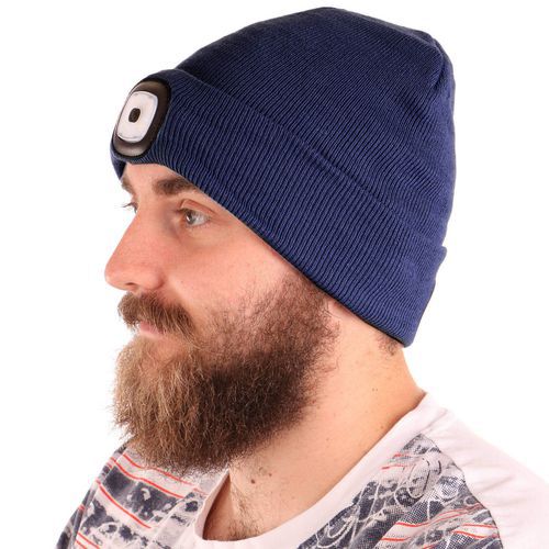 Čepice s čelovkou 180lm, nabíjecí, USB, univerzální velikost, bavlna/PE, modrá SIXTOL