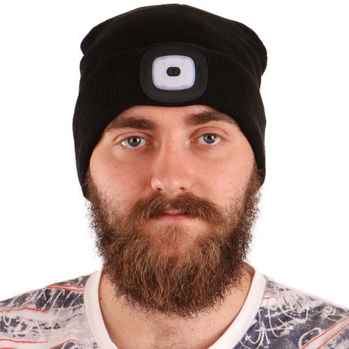 Čepice s čelovkou 180lm, nabíjecí, USB, univerzální velikost, bavlna/PE, černá SIXTOL