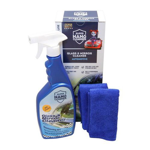 Balení obsahuje rozprašovač Glass & Mirrors Cleaner, utěrka z mikrovlákna, jednorázová rukavice