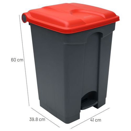 Odpadkový nášlapný koš Manutan Expert, 45 l, červená/šedá