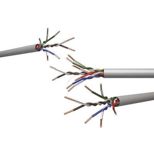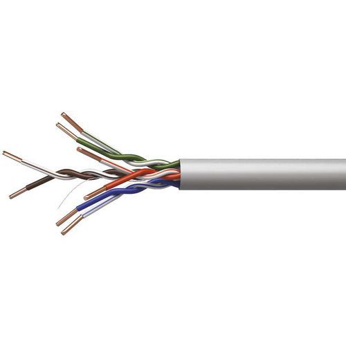 Nestíněný horizontální kabel nejvyšší kvality kategorie CAT5E s PVC pláštěm. Jádra vodičů vyrobeny z nerecyklované mědi. Kabel splňuje požadavky směrnice CPR o stavebních výrobcích.