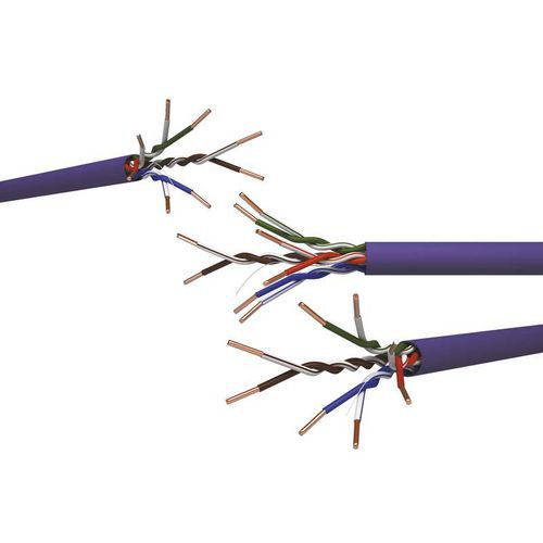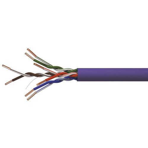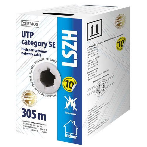 Nestíněný horizontální kabel nejvyšší kvality kategorie CAT5E s PVC pláštěm. Jádra vodičů vyrobeny z nerecyklované mědi. Kabel splňuje požadavky směrnice CPR o stavebních výrobcích.