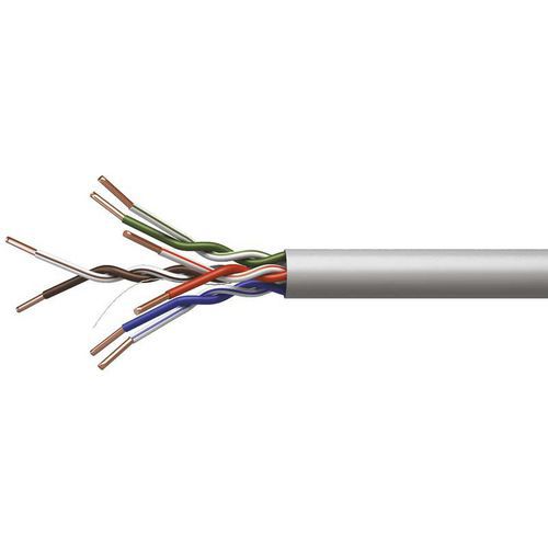 Nestíněný horizontální kabel nejvyšší kvality kategorie CAT5E s PVC pláštěm. Jádra vodičů vyrobeny z nerecyklované mědi. Kabel splňuje požadavky směrnice CPR o stavebních výrobcích.