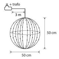- Originální vánoční dekorace s 3D kovovou světelnou koulí průměru 50 cm s teplými bílými LED diodami.