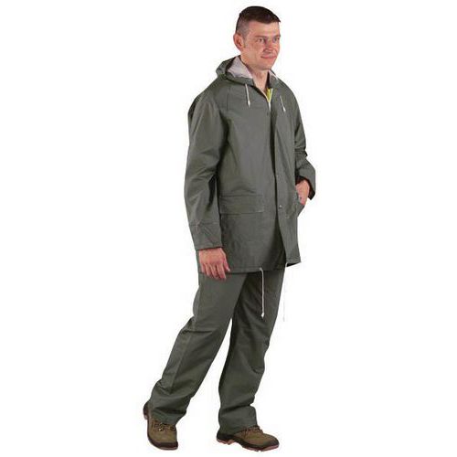 - Nepromokavá souprava bundy a kalhot s dvojitou povrchovou úpravou (bavlněný podklad z PVC a polyesteru).