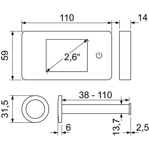 | Technické údaje | Obrazovka: 2,6'' LCD 76.800 pixelů , Pro tloušťku dveří: 38-110 mm , Barva: obrazovka stříbrná/černá, kukátko chrom |