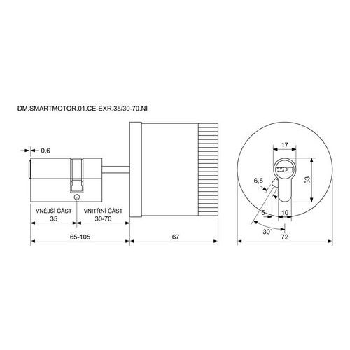 Digitální motor ovládající cylindrickou vložku z vnitřní strany dveří, 35/30-70 mm, černý