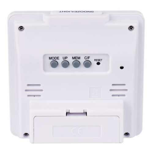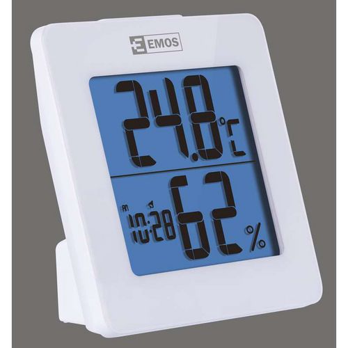 - Teploměr v bílé barvě s hodinami řízenými Quarz krystalem.