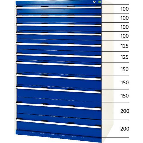 Dílenská zásuvková skříň, Bott SL-107, výška 160 cm, 11 zásuvek