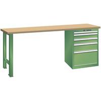 Dílenský pracovní stůl LISTA, 1500x700x840mm, 5 zásuvek, nosnost 1500 kg, zelená