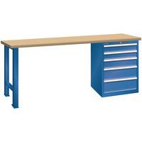 Dílenský pracovní stůl LISTA, 1500x700x890mm, nosnost 1500 kg, 5 zásuvek, tmavě modrá