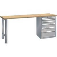 Dílenský pracovní stůl LISTA, 1500x700x890mm, nosnost 1500 kg, 6 zásuvek, šedá/stříbrná