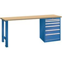 Dílenský pracovní stůl LISTA, 1500x700x890mm, nosnost 1500 kg, 6 zásuvek, tmavě modrá