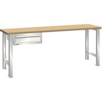 Dílenský pracovní stůl LISTA, 1500x750x890mm, 1 zásuvka, nosnost 600 kg, světle šedá