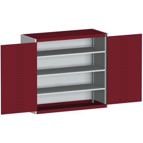 Dílenská skříň Bott Cubio 160, 120 x 130 x 52,5 cm, perfo dveře, šedá-červená