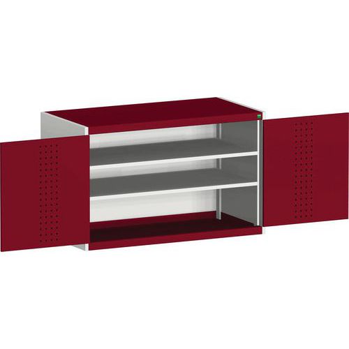 Dílenská skříň Bott Cubio 160, 80 x 130 x 52,5 cm, perfo dveře, šedá-červená