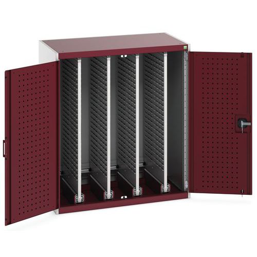 Dílenská skříň Bott Cubio s výsuvnými perfopanely, 120 x 105 x 65 cm, plné dveře, šedá-červená