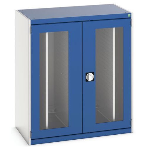 Dílenské skříně Bott Cubio s výsuvnými perfopanely, průhledné dveře