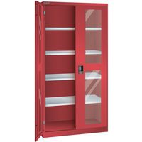 Dílenské skříně LISTA s policemi, 1000x400x1950mm, dveře s plexisklem, červená