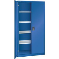 Dílenské skříně LISTA s policemi, 1000x500x1950mm, plné dveře, fluorescentní modrá