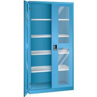 Dílenské skříně LISTA s policemi, 1000x500x1950mm, dveře s plexisklem, světle modrá