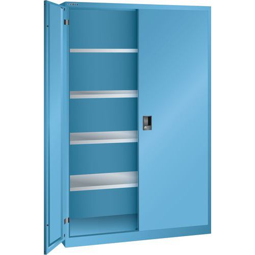 Dílenské skříně LISTA s policemi, 1250x400x1950mm, plné dveře nebo s plexisklem
