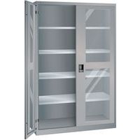 Dílenská skříň LISTA s policemi, 1250x400x1950mm, dveře s plexisklem, šedá/stříbrná