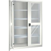 Dílenská skříň LISTA s policemi, 1250x400x1950mm, dveře s plexisklem, bílá