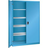 Dílenská skříň LISTA s policemi, 1250x500x1950mm, plné dveře, světle modrá