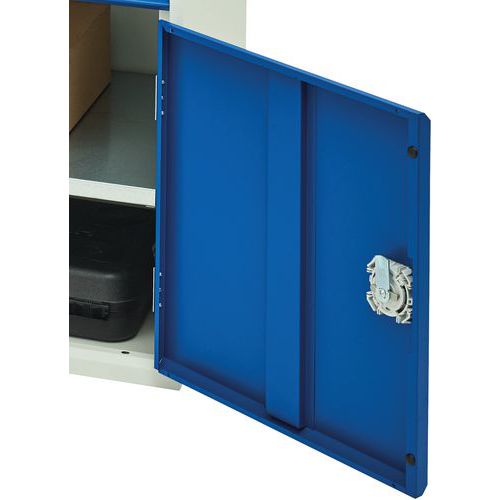 Vyztužené křídlové dveře s tříbodovým cylindrickým rozvorovým zámkem se dvěma klíči.