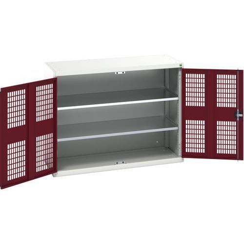 Dílenská skříň policová Bott Verso, drátěné dveře, 2 police, 100 x 130 x 55 cm, šedá-červená