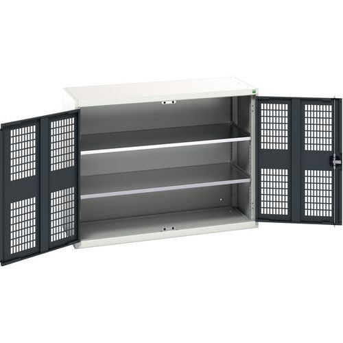 Dílenská skříň policová Bott Verso, drátěné dveře, 2 police, 100 x 130 x 55 cm, šedá-antracit
