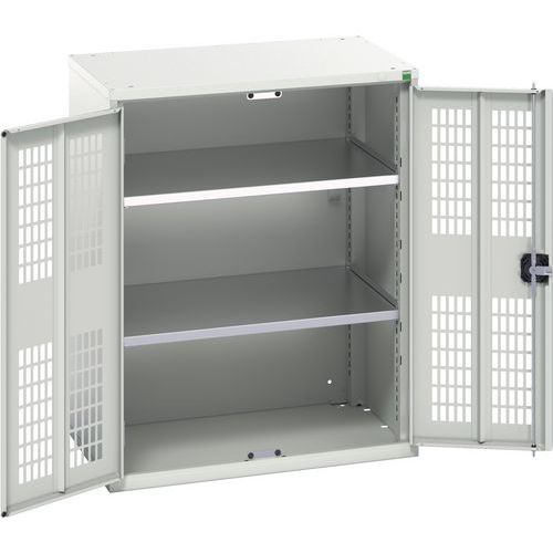 Dílenská skříň policová Bott Verso, drátěné dveře, 100 x 80 x 55 cm, 2 police, šedá-šedá