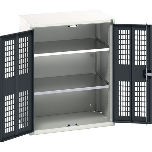Dílenská skříň policová Bott Verso, drátěné dveře, 100 x 80 x 55 cm, 2 police, šedá-antracit