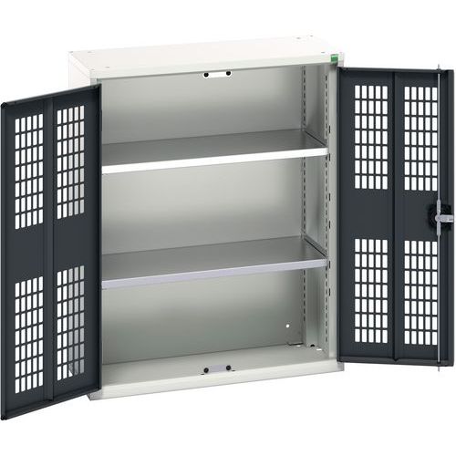 Dílenská skříň policová Bott Verso, drátěné dveře, 100 x 80 x 35 cm, 2 police, šedá-antracit